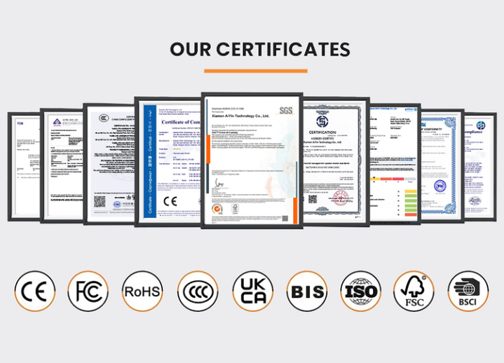 来自爱印科技的启锐A40系列产品都通过了CCC、CE、FCC、RoHS等多项国际认证。